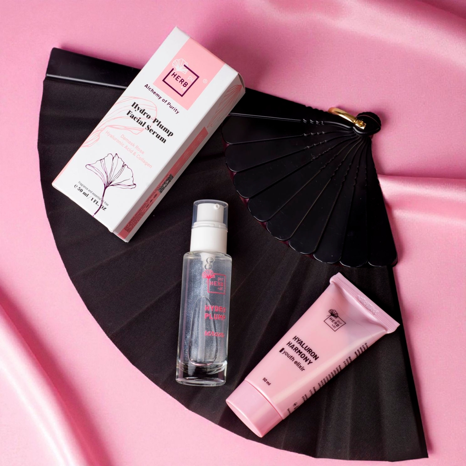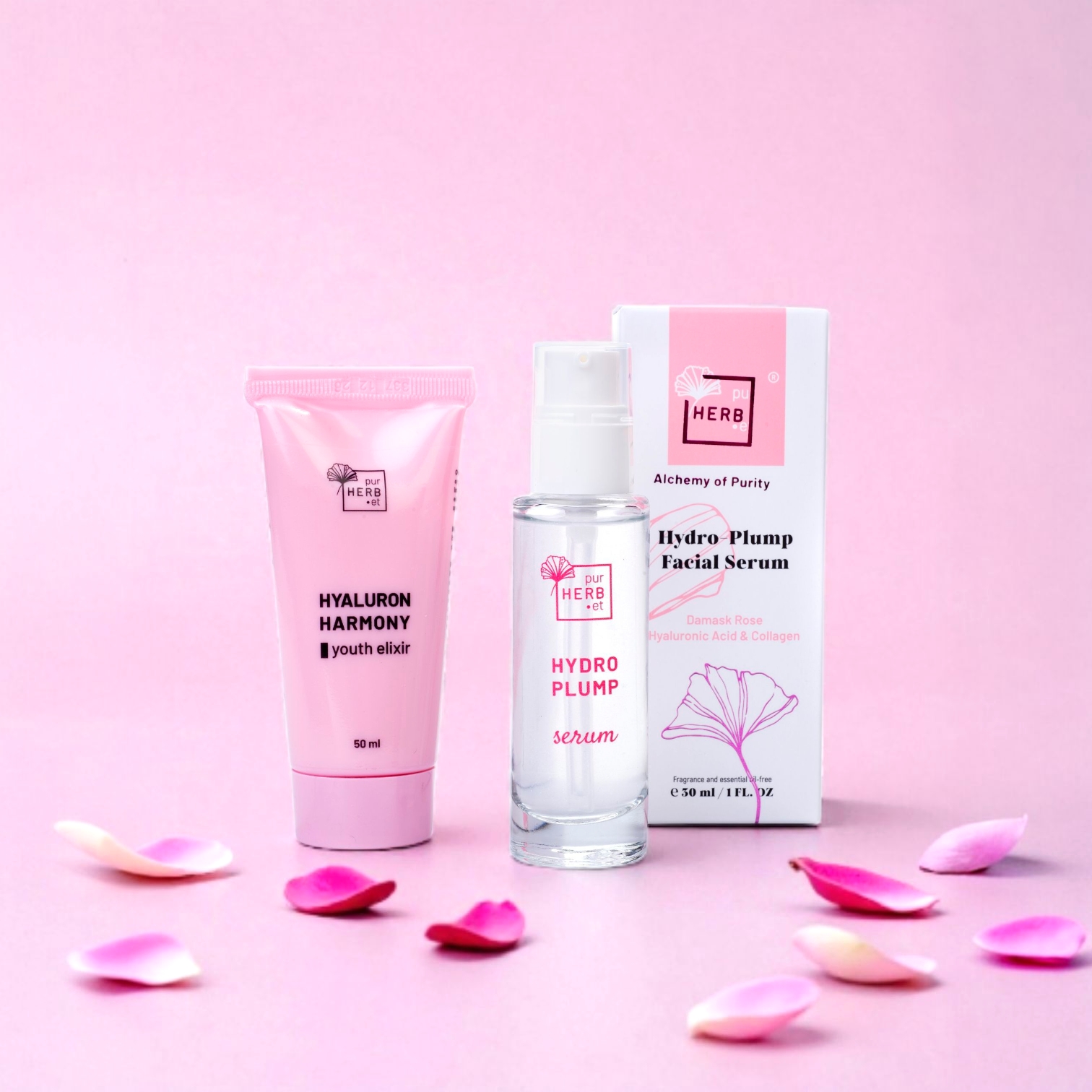 Hyaluron & Collagen Serum utilizează un complex de acid hialuronic cu trei tipuri de greutăți moleculare pentru a hidrata în profunzime pielea, iar Hyaluronic Harmony / Youth Elixir Cream completează tratamentul, oferind protecție și fermitate pe tot parcursul zilei.